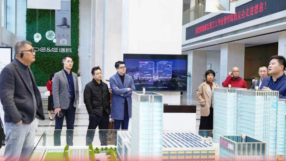 2025年11月19日,浙江理工大学经济管理学院院长杨翼、党委副书记赵虎,浙江省生态文明研究院院长、浙江理工大学经济管理学院经济系教授胡剑锋,经济管理学院校友会执行会长余文罡,学院校友会副会长、杭州校友会会长徐金晖,以及30余名学院优秀校友代表走进德意控股开展校企合作活动。德意集团董事长高德康,集团党委书记、战略发展总经理陈盛东,集团党委副书记、办公室主任沈燕红出席本次活动,共探校企合作新路径,共绘融合发展新蓝图!