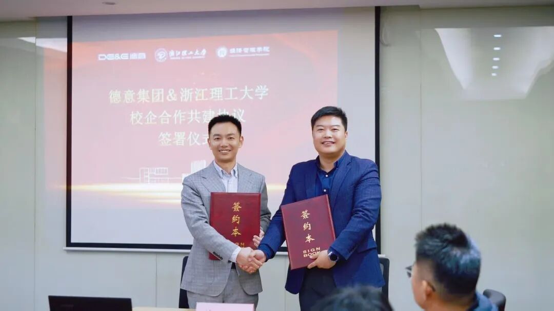 在与会人员的见证下,浙江理工大学经济管理学院学术院长杨翼与德意集团董事长高德康共同签署了《校企合作共建协议》。未来,双方将围绕人才培养、科研合作等多个领域,